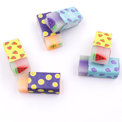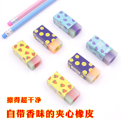 Creative fruit cartoon eraser for students, sliceable with less shavings, cute fruity flavor center, direct factory sales