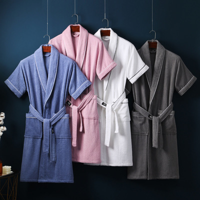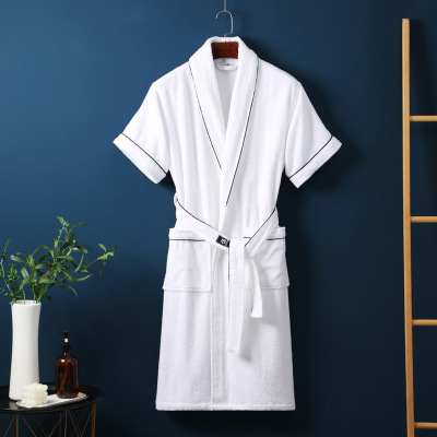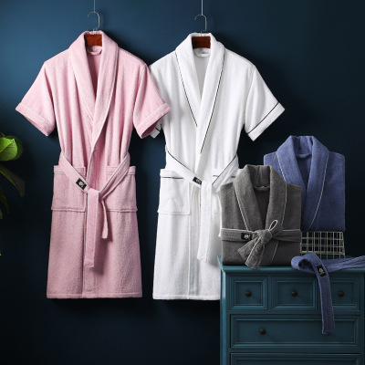 Pure Cotton Robe for Men and Women Short Sleeve Long Length Hotel 100% Cotton Sleep Gown Spring and Summer Absorbent Quick Dry Couple Bathrobe Wholesale