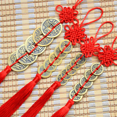 True Copper Long String Six Emperors Coins + Red Small Knot