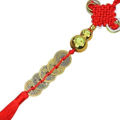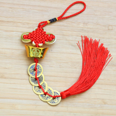 Ancient Coin Style Lucky Money Pendant with Real Copper Five Emperors Coins, Car Hanging Decor with Chinese Knot, Automotive Accessory for Car Interior