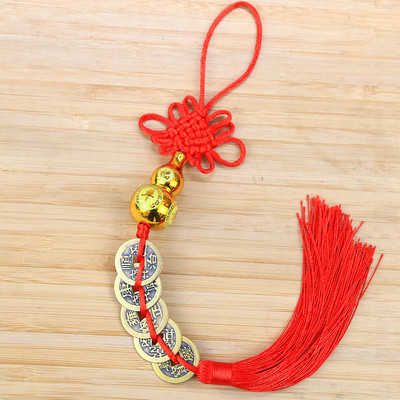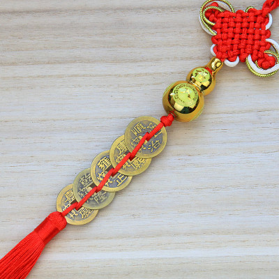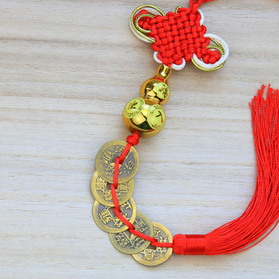 Copper Five Emperors + Wood Gourd Gold Thread Knot Pendant