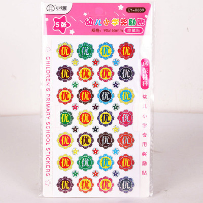 Preschool Reward Sticker, Little Apple Praise Sticker, Teacher Cartoon Sticker, Glitter Sticker Strip, 5-Pack