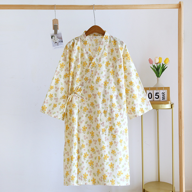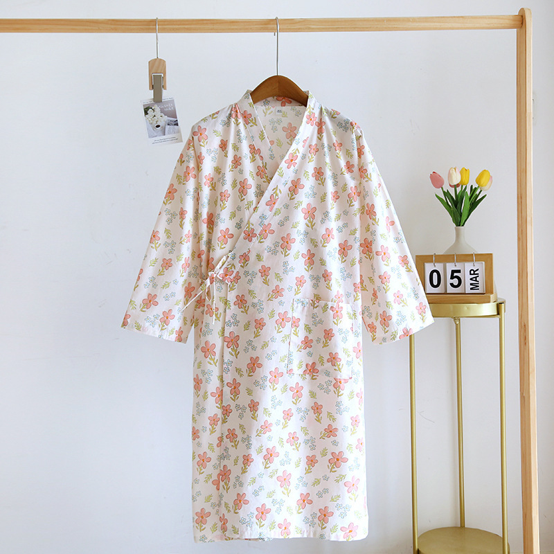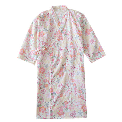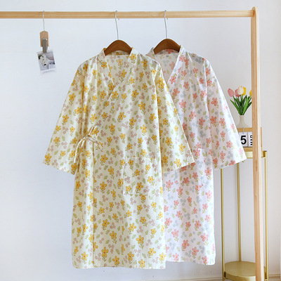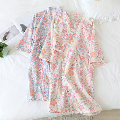 Pajamas for women spring and summer Japanese kimono cotton printed nightgown thin women's tie bathrobe summer women's home wear