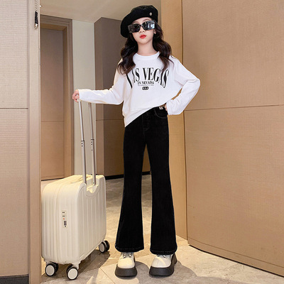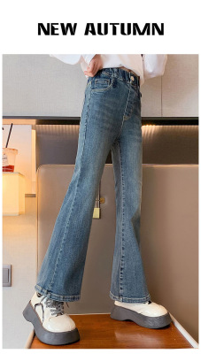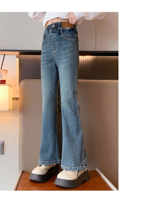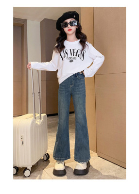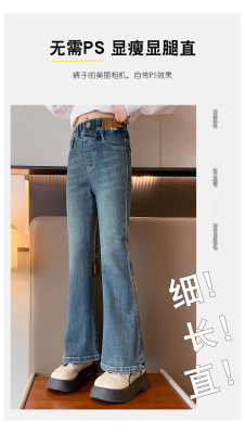 Girls' flared jeans spring and autumn 2024 new fashionable girls' spring fashionable pants children's slim pants