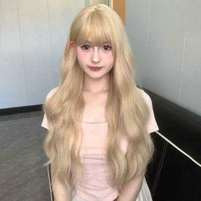 Wang Ming Women's White and Gold Long Wavy Hair Cos Lolita Water Wave Full Head Wig 67cm