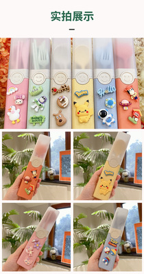 Cartoon creative wheat straw knife, fork, spoon, chopsticks, convenient tableware storage box, student and children's tableware lunch box set