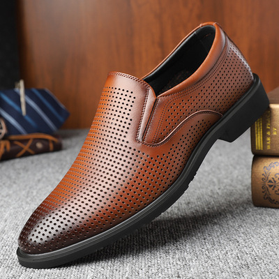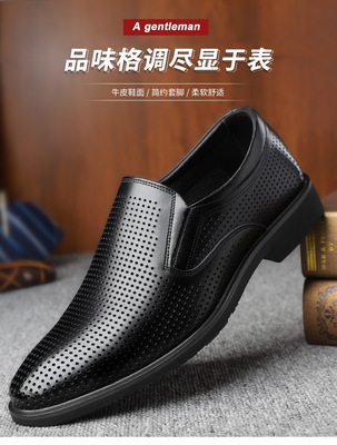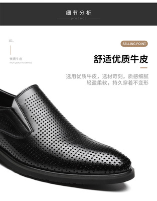 皮鞋男夏季鏤空透氣大碼男鞋牛皮商務正裝洞洞涼皮鞋男士套腳皮鞋