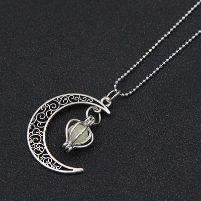 歐美跨境鏤空月亮可打開發光吊墜金屬飾品鎖骨項鍊女廠家直銷