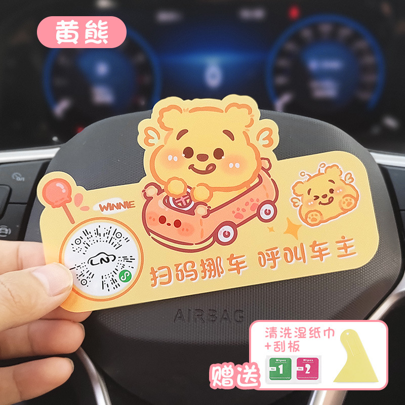 汽車挪車掃碼牌二維碼移車臨時停車電話號碼牌車內創意卡通貼隱私