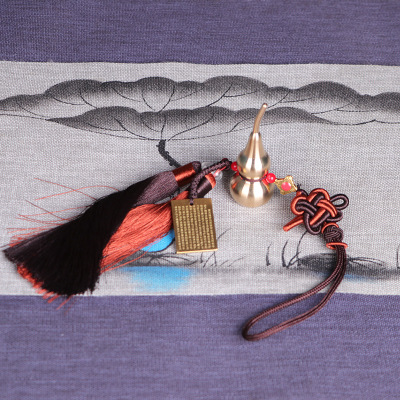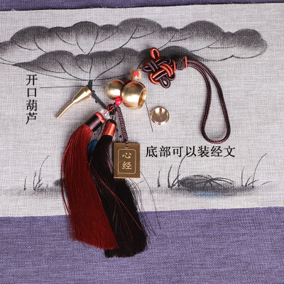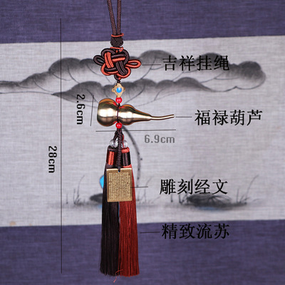 Car ornament Chinese knot brass gourd rearview mirror hanging accessory vehicle interior decoration Heart Sutra Samadhi Sutra Great Compassion Mantra