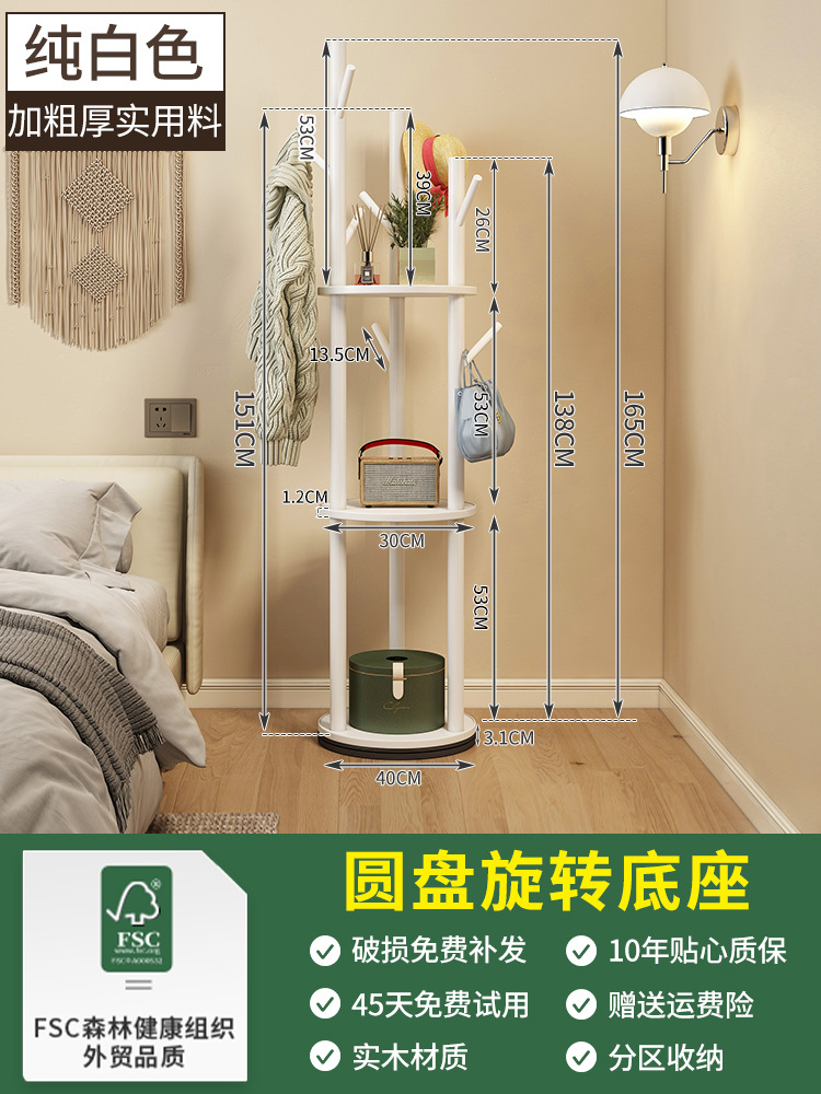 Solid wood coat rack floor-standing bedroom clothes rack clothing storage rack living room entrance home indoor rotating rack