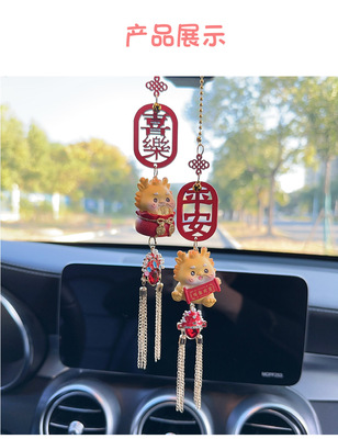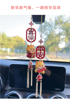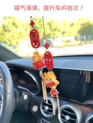 Car Ornament Creative Cute Dragon Year Good Fortune Rearview Mirror Clip Car Decoration Pendant Chain Interior Decor