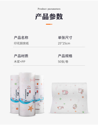 Wet and Dry Kitchen Paper Towels, Disposable, Oil Absorbent, Water-Resistant, Thick Roll, Washable, Lazy Person's Cloth