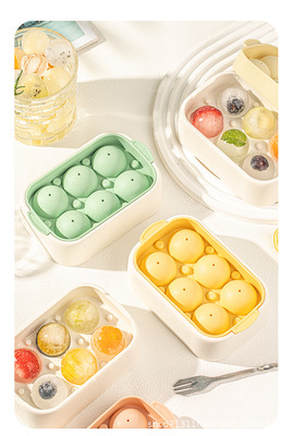 Covered spherical ice cube tray food-grade ice cube tray refrigerator ice ball tray household 6-grid round ice mold ice making tray