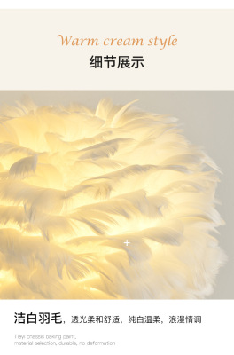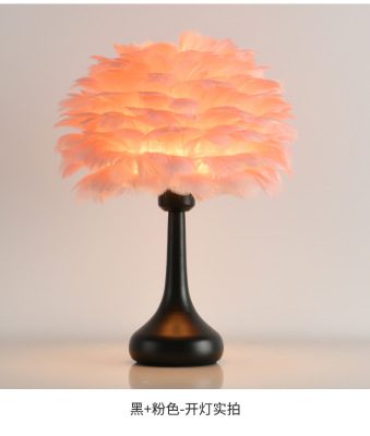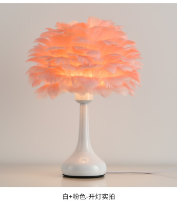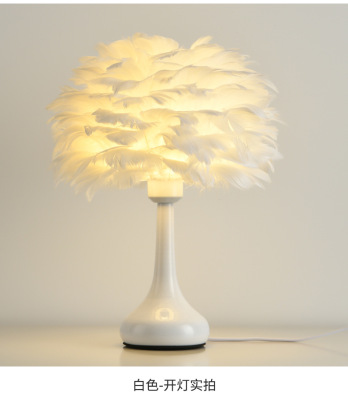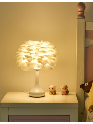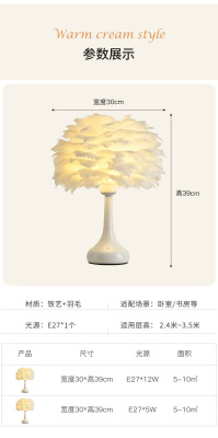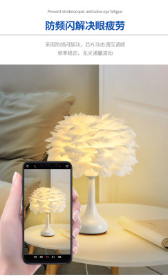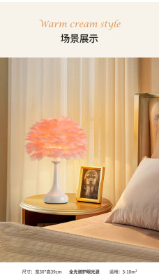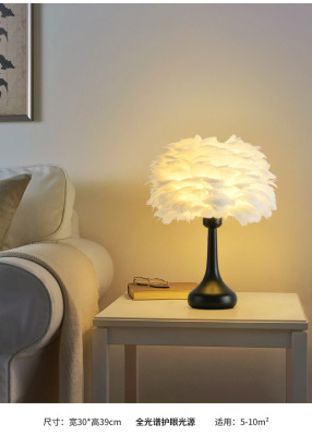 Full Spectrum Nordic Decor Feather Bed Lamp Bedroom Atmosphere Influencer Eye-Caring Bedside Lamp High-End Romantic Night Lamp