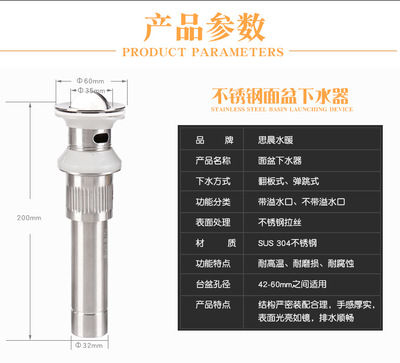 304 sewer pipe drainage pipe set basin wash basin basin wash basin hole drain accessories bounce