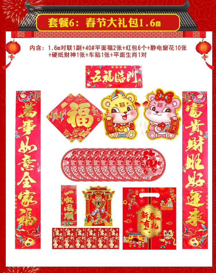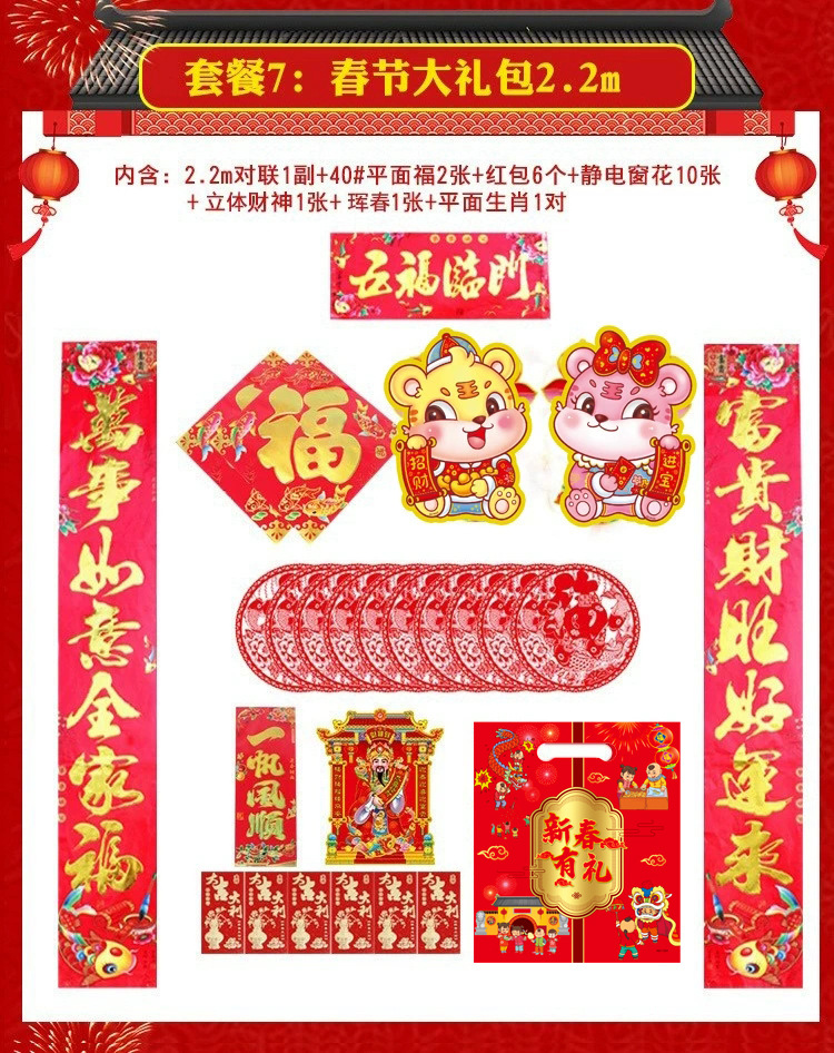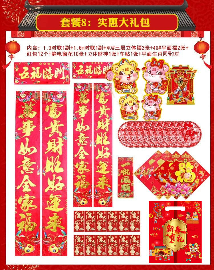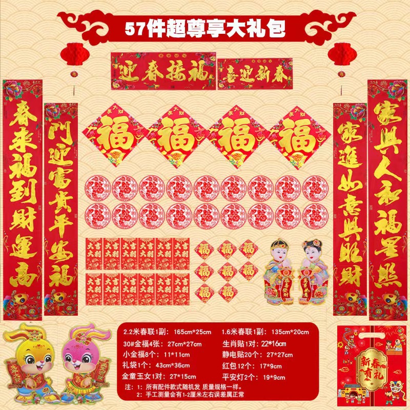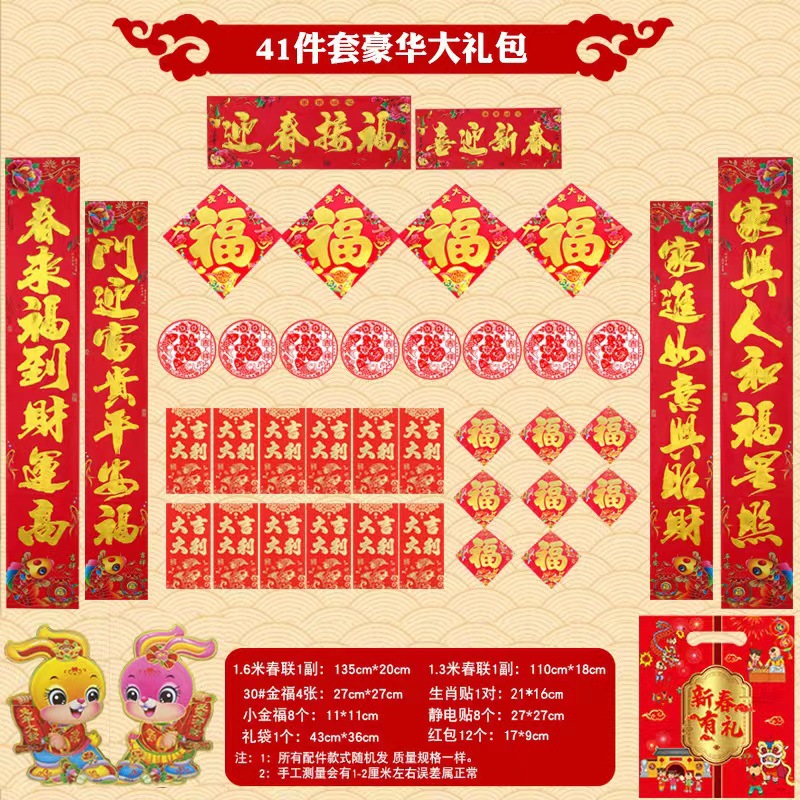51-piece internet celebrity agent Year of the Dragon couplet cartoon Spring Festival set door sticker couplet gift package