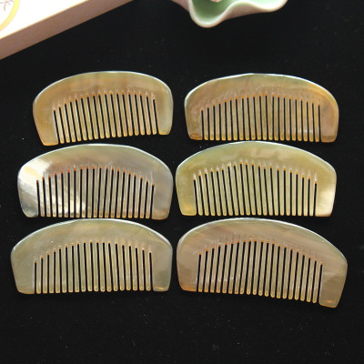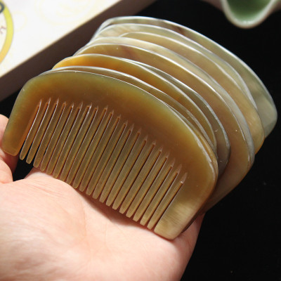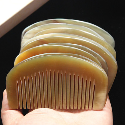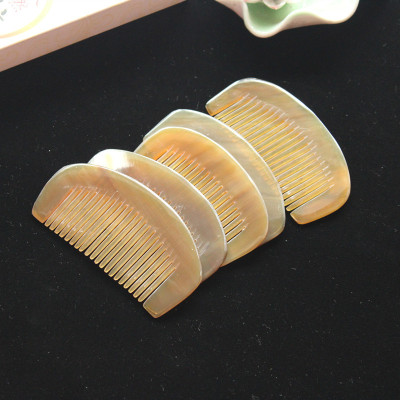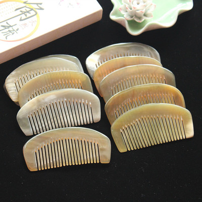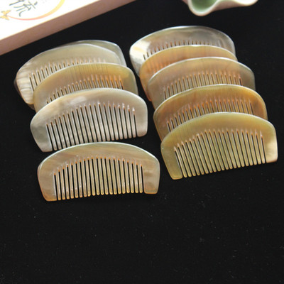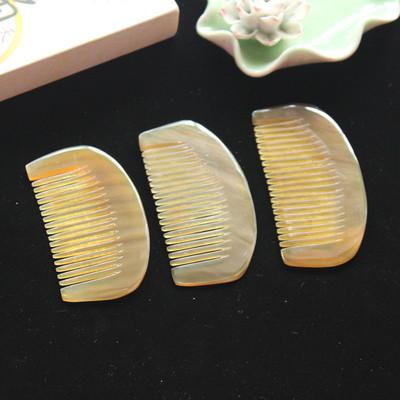 攜帶方便9厘米黃牛角月梳 密齒包包梳半月梳 牛角密齒梳