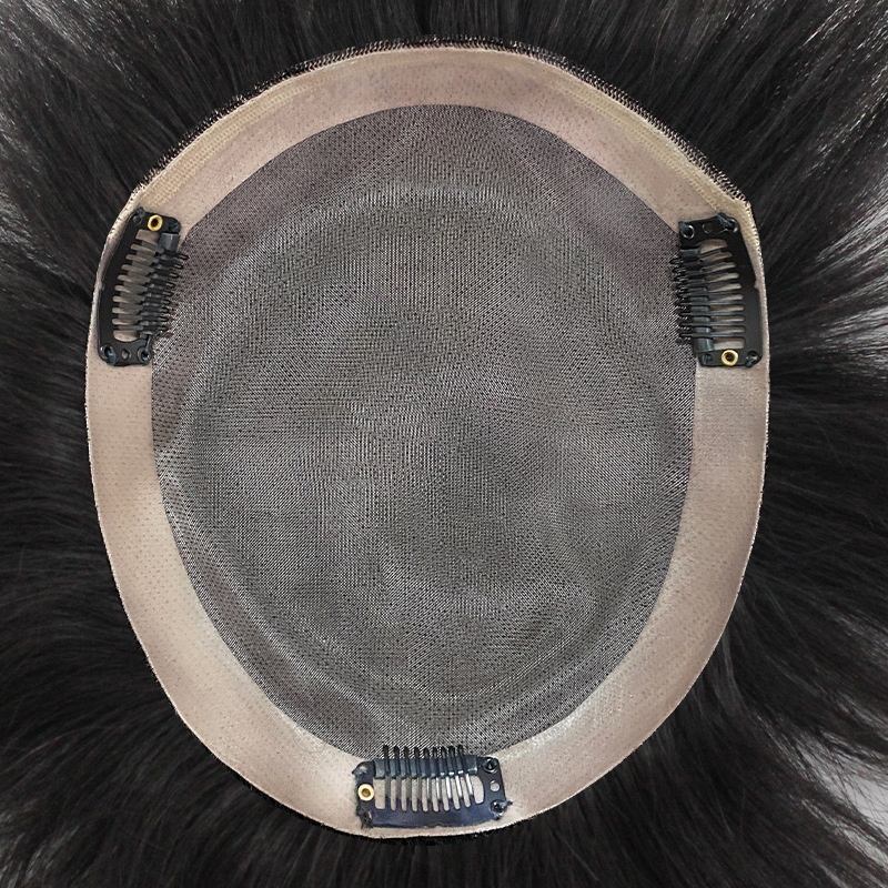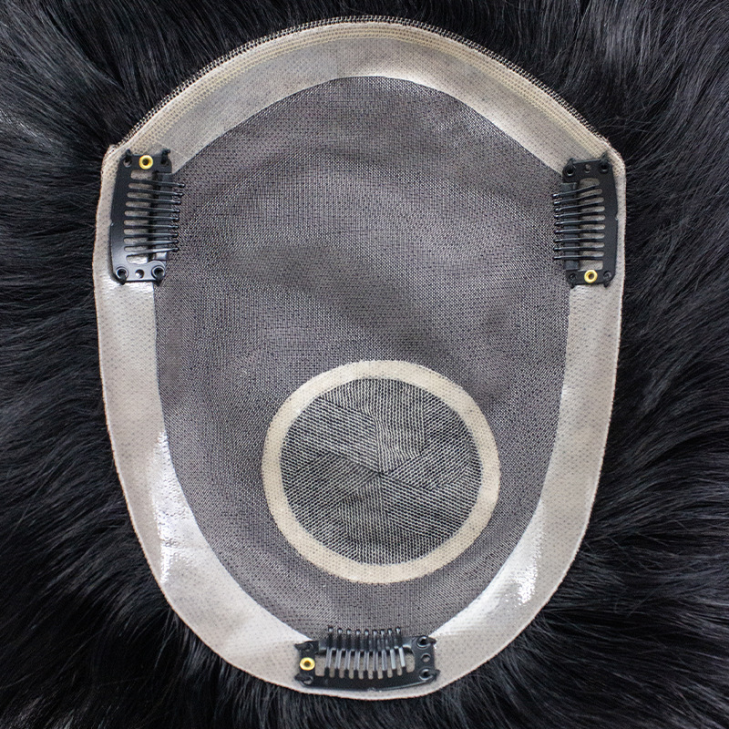 Men's wig factory wholesale mono net fully hand-knitted hand-knit hair replacement piece real hair ultra-thin breathable top hair replacement piece