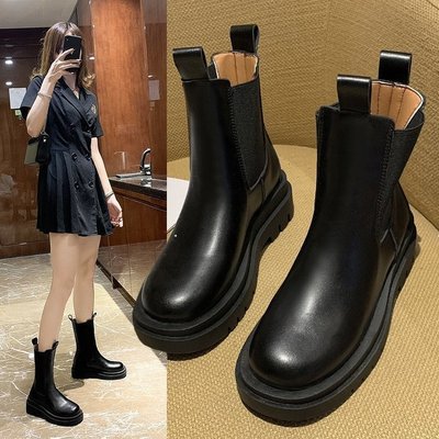 Internet celebrity's same style chimney boots thick-soled Martin boots for women British style autumn mid-calf high-leg Chelsea short boots manufacturer