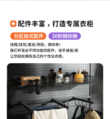 T9J5 wholesale hanger wall iron cloakroom bedroom storage simple metal hole board open wardrobe storage