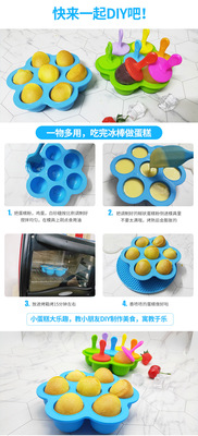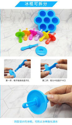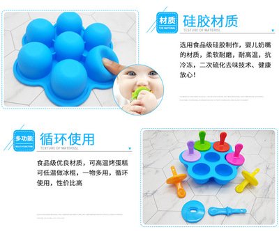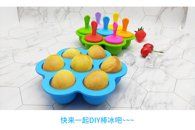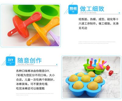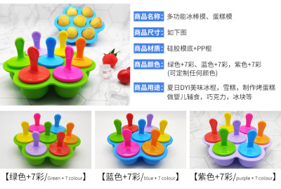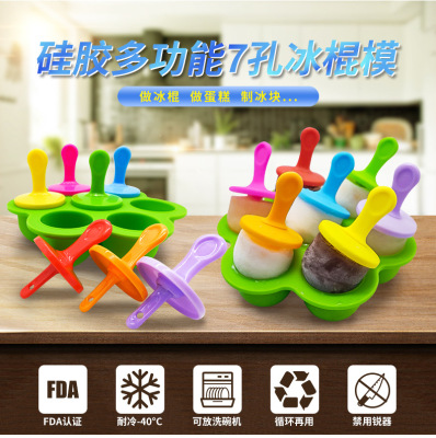 Multi-purpose popsicle mold silicone 7-hole popsicle mold colorful diy ice cream mold ice tray popsicle creative cake mold