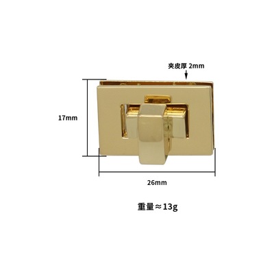 批發箱包五金 淺金色擰鎖 小方鎖 金屬鎖扣 包配件 長方形擰扣鎖