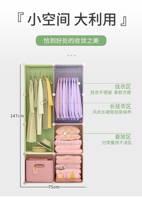 Simple wardrobe for rent, home use bedroom small dormitory assemble casual wardrobe sturdy plastic storage cabinet