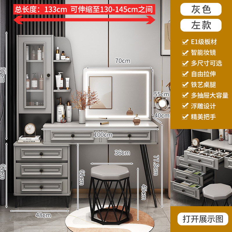 輕奢梳妝檯臥室現代簡約小戶型化妝檯帶鏡子化妝桌收納儲物櫃一體