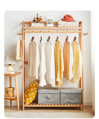 Simple solid wood wardrobe hanging stand, bedroom closet hanger, living room beech wood clothes drying rack, home room upright rod