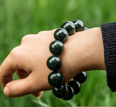 新疆和田玉青玉手鍊 男女款原石圓珠玉石手串廠家批發 支持鑑定