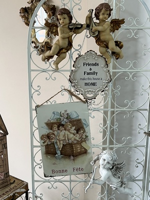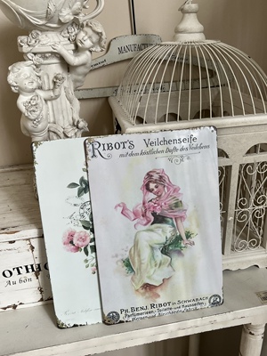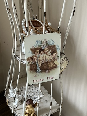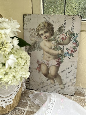 4TXN批發4張批發復古做舊天使花朵玫瑰鐵皮畫花園牆面裝飾畫拍攝