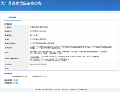 Special Non-Special Cosmetic Registration Number: Guangdong G Cosmetics Network Preparation No. 2017000001