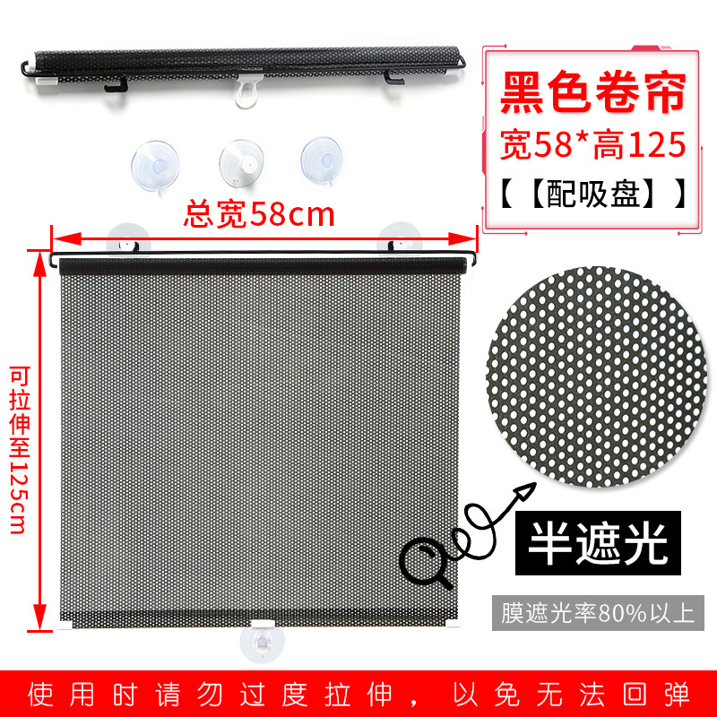 Black, 40cm wide and 125cm retractable [with suction cups + auxiliary stickers]