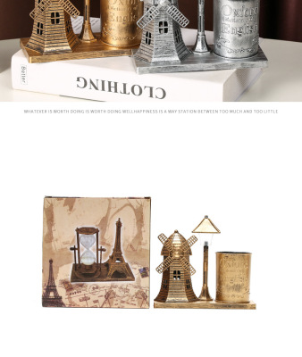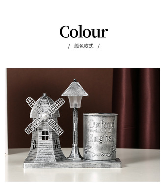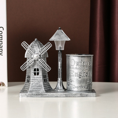 風車路燈筆筒銀色