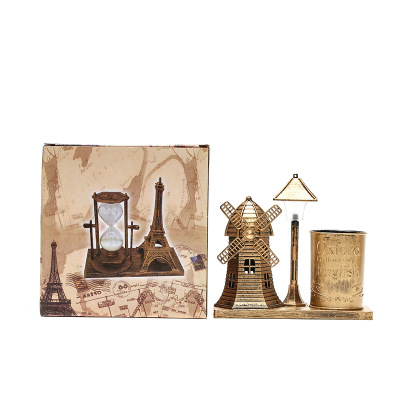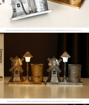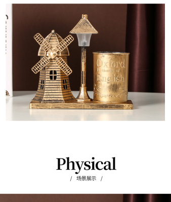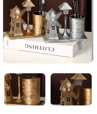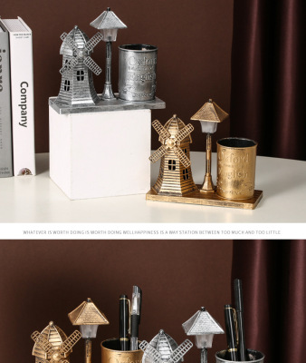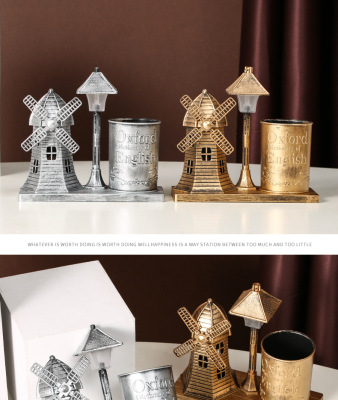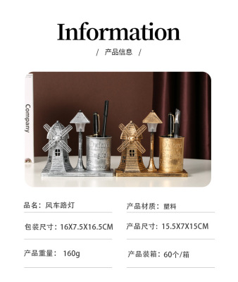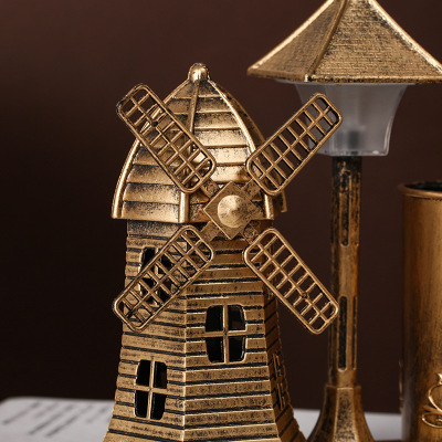風車路燈筆筒金色