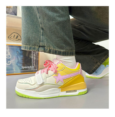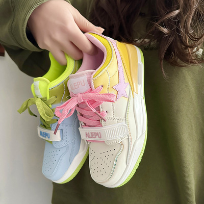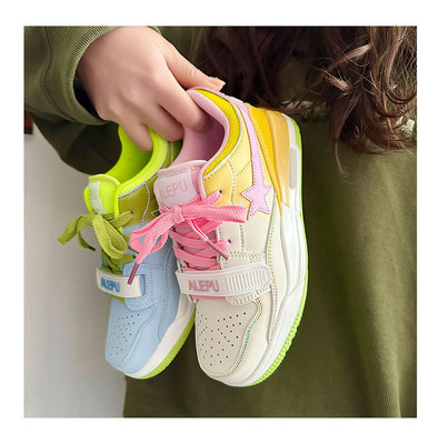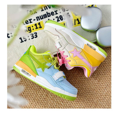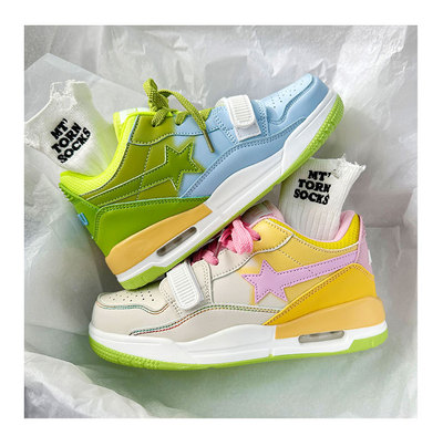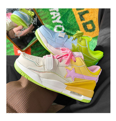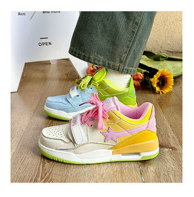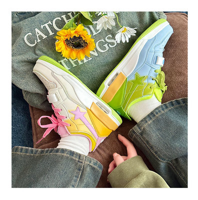 港風ins小眾鴛鴦星星氣墊運動板鞋女2023秋冬新款百搭韓版休閒鞋