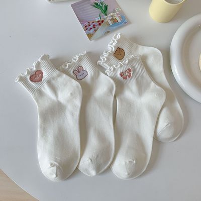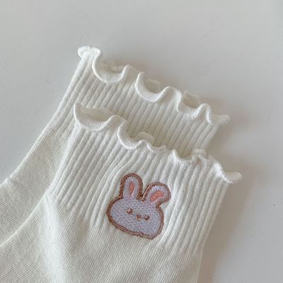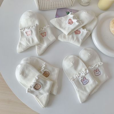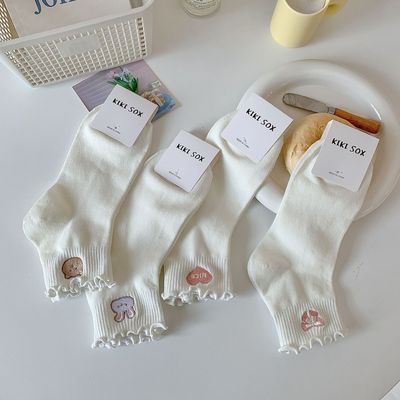 Cute Embroidered Ruffled White Socks for Women | Mid-Calf Ins-style Spring/Fall Socks in Japanese JK Style, Perfect for Girls
