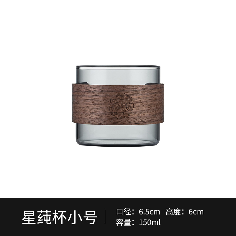 日式手工木扣隔熱防燙玻璃小茶杯家用喝茶杯品茗杯主人杯高硼硅