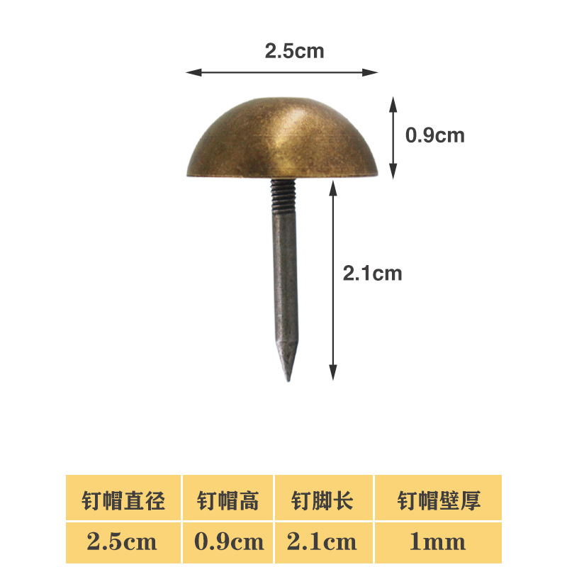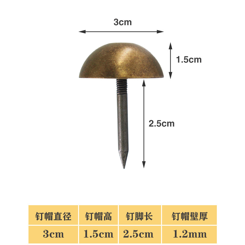 S588仿古實木大門銅泡釘大門銅釘裝飾釘純銅泡釘鼓釘圓頭釘大門蘑