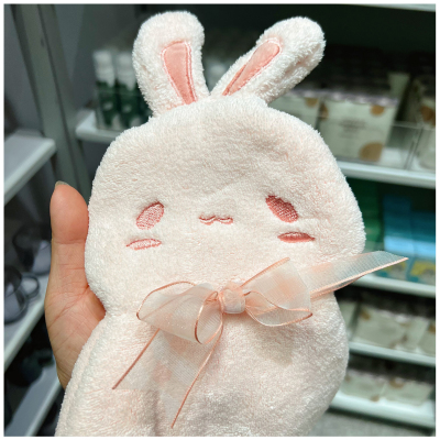 UG73可愛萌兔擦手巾加厚吸水珊瑚絨洗手巾掛式兒童手帕廚房擦手毛