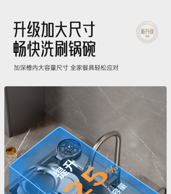 A10-6045 sink + three-speed pull-out faucet + cup washer + console drain