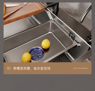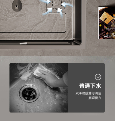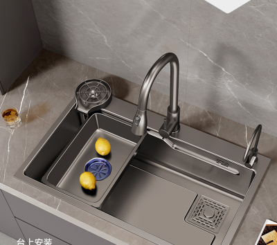 UG73 Gray 304 Stainless Steel Nano Kitchen Sink Household Large Single Slot Handmade Undercounter Basin Wash Basin Dishwasher Hand
