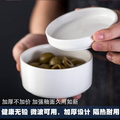 Japanese and Korean ceramic tableware set, pure white with lid, seasoning plate, kitchen multi-purpose sealed jar, snack steamer bowl plate set