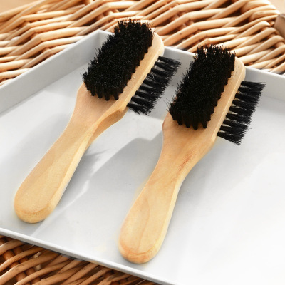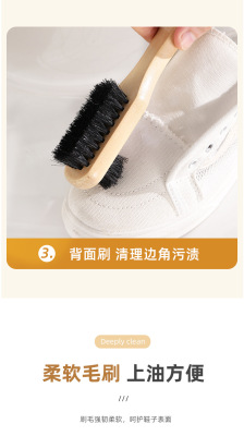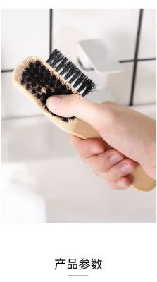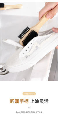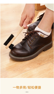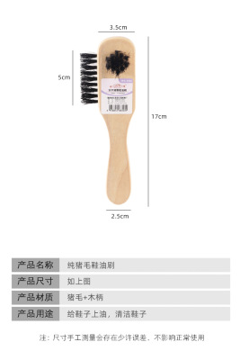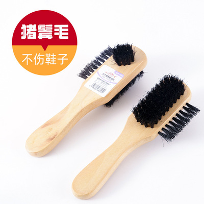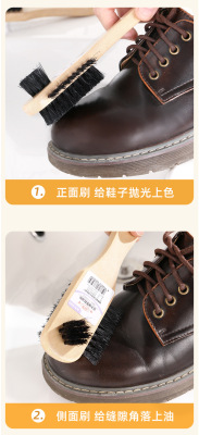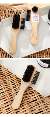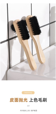 Pig bristle shoe polish brush solid wood handle does not hurt shoes shoe shine brush cleaning shoe brush soft bristle brush three-sided pig bristle brush