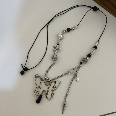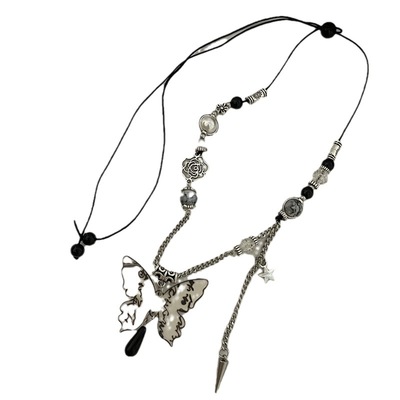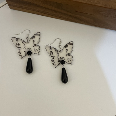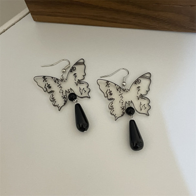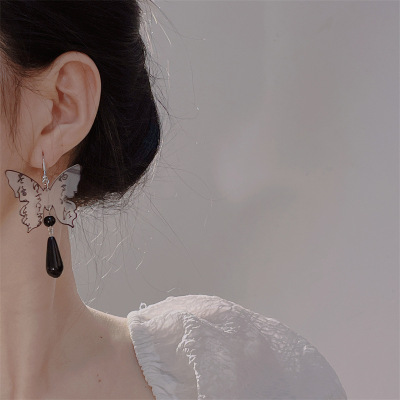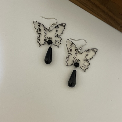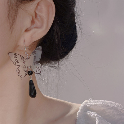 E5 長款 黑色水滴蝴蝶耳鈎