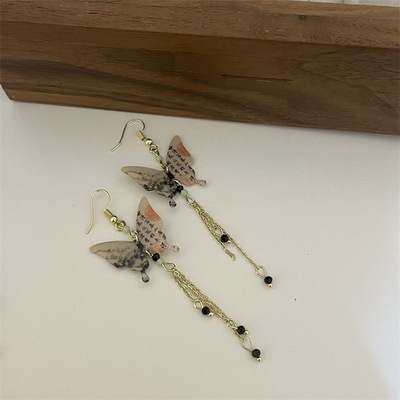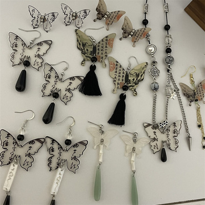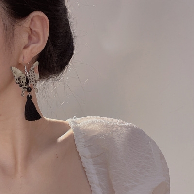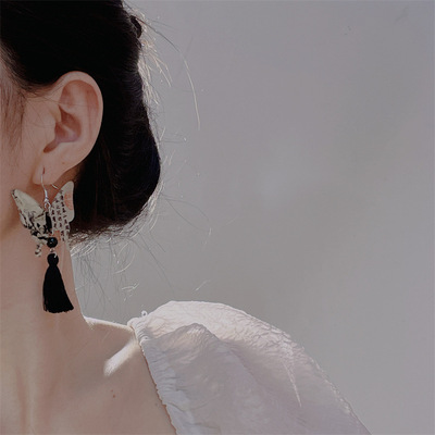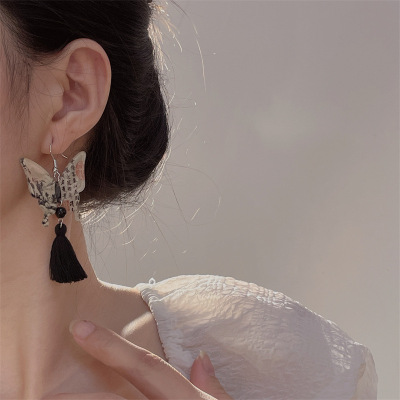 新中式水墨蝴蝶配飾超仙氣質流蘇耳墜耳環高級感輕奢中國風項鍊