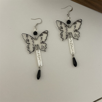 D4 短款文字蝴蝶耳環