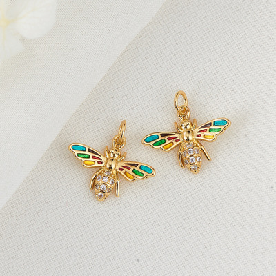 眾興新款時尚重工鑲嵌彩鋯石鍍銅吊墜秋款椰子樹蝴蝶小蜜蜂笑臉