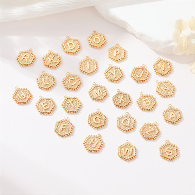 亞馬遜復古輕奢小眾六邊形菱形簡約26字母項鍊吊墜diy飾品配件
